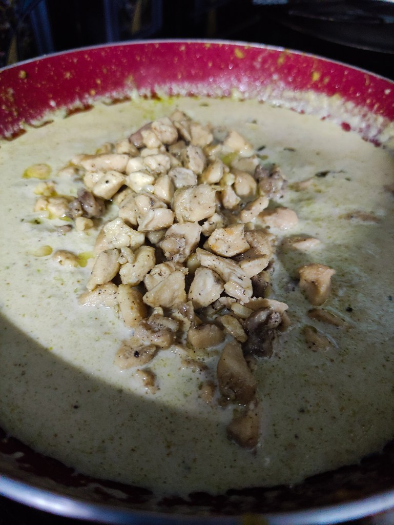 6. Now add fried fish along with 2 slits green chillies and cover the lid to cook till the gravy thicken to your desired consistency.